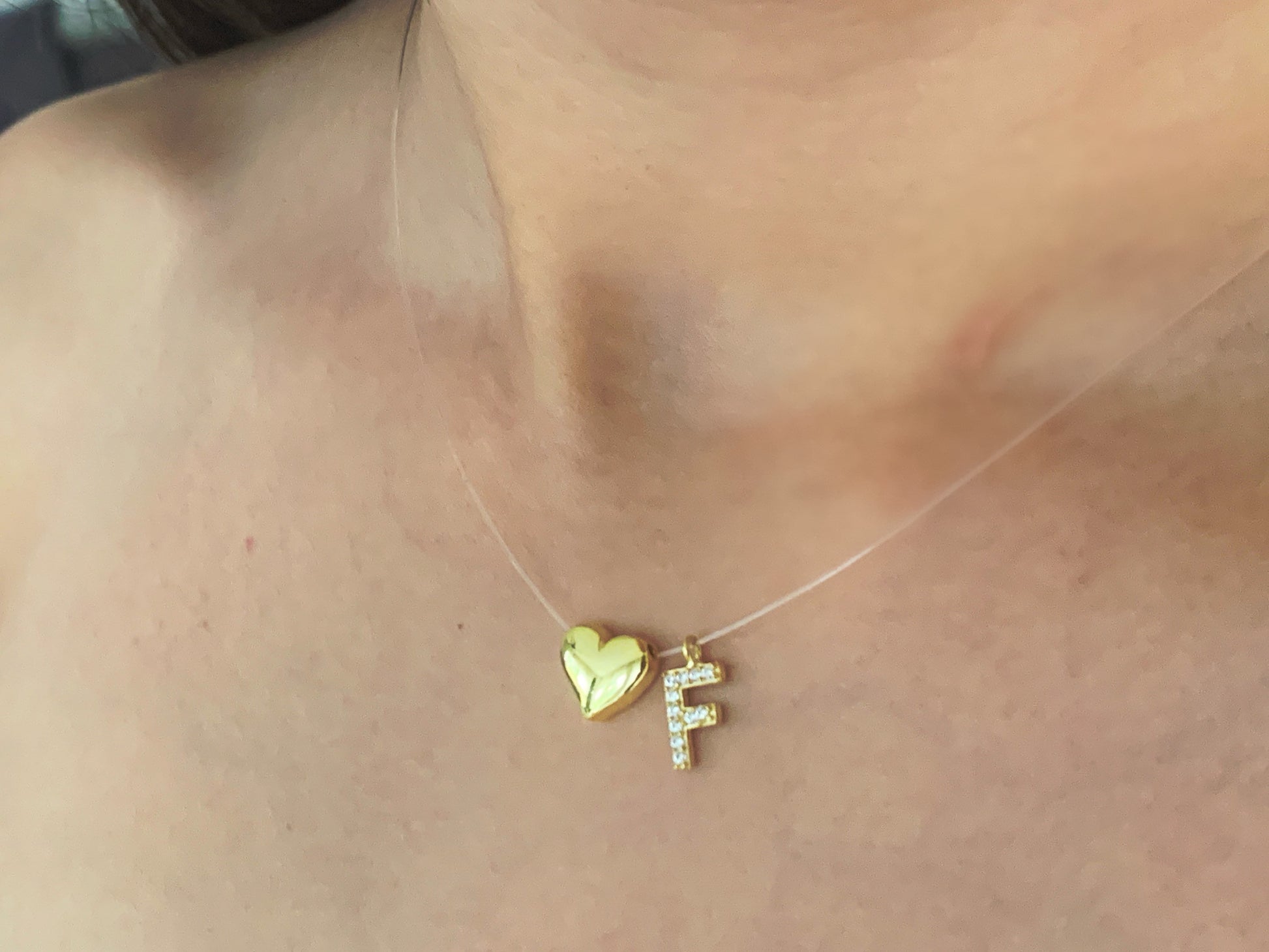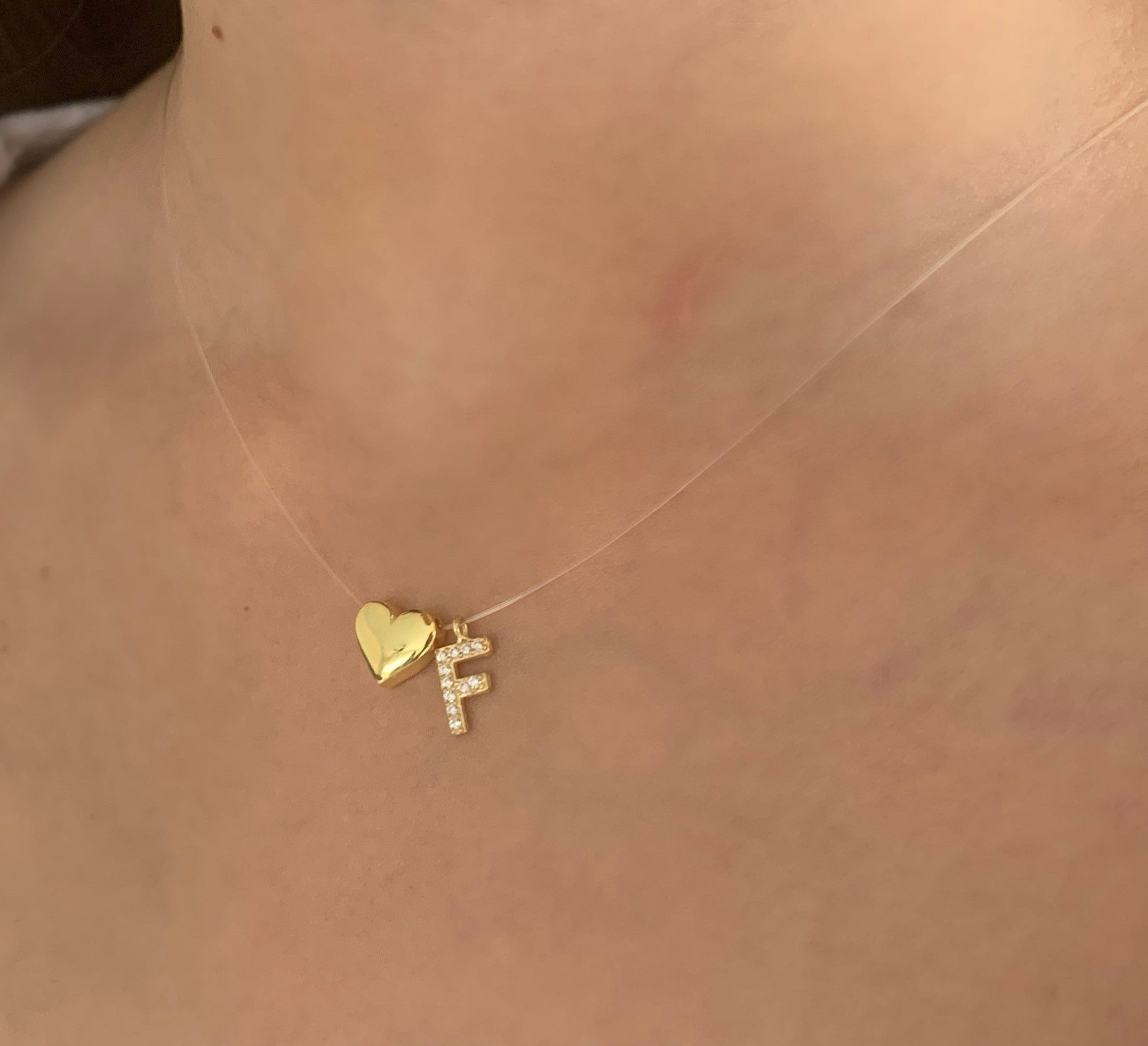 Tiny Initial Letter Necklace, Personalized Gifts, Invisible Necklace, Clear Corg Chain, CZ Gemstone, Layering Minimalist Necklace, Gift