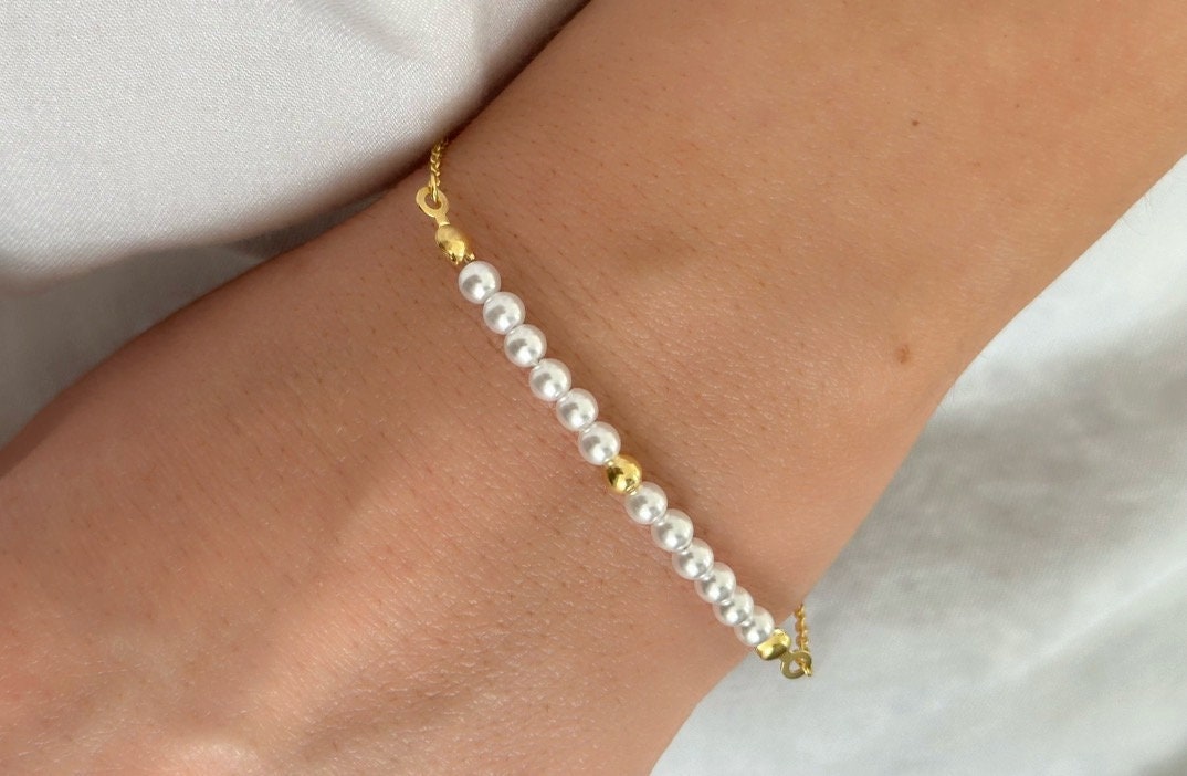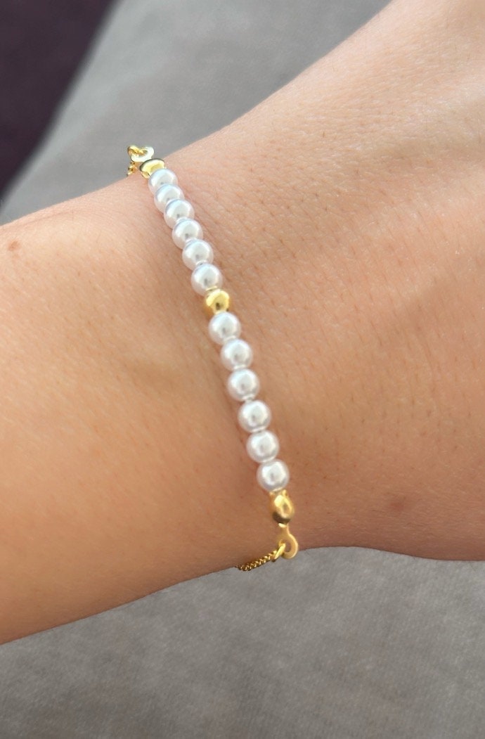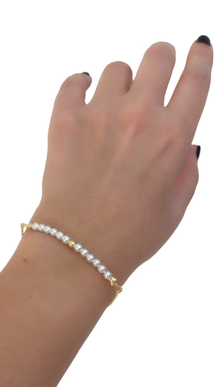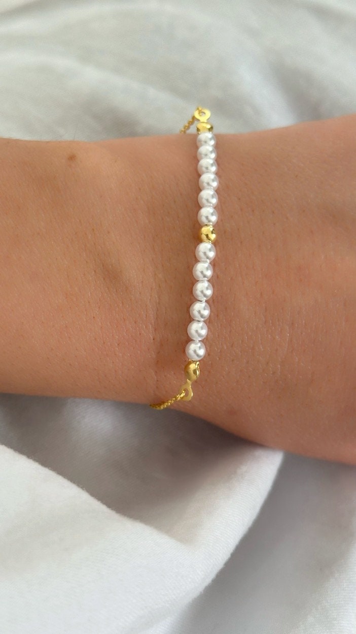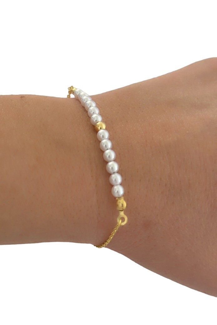 Tiny Pearl Bracelet, Gold Pearl Bracelet, Bridesmaid Bracelet, Pearl Jewelry, Layering Bracelet, Stacking Bracelet, Minimalist Jewelry, 925